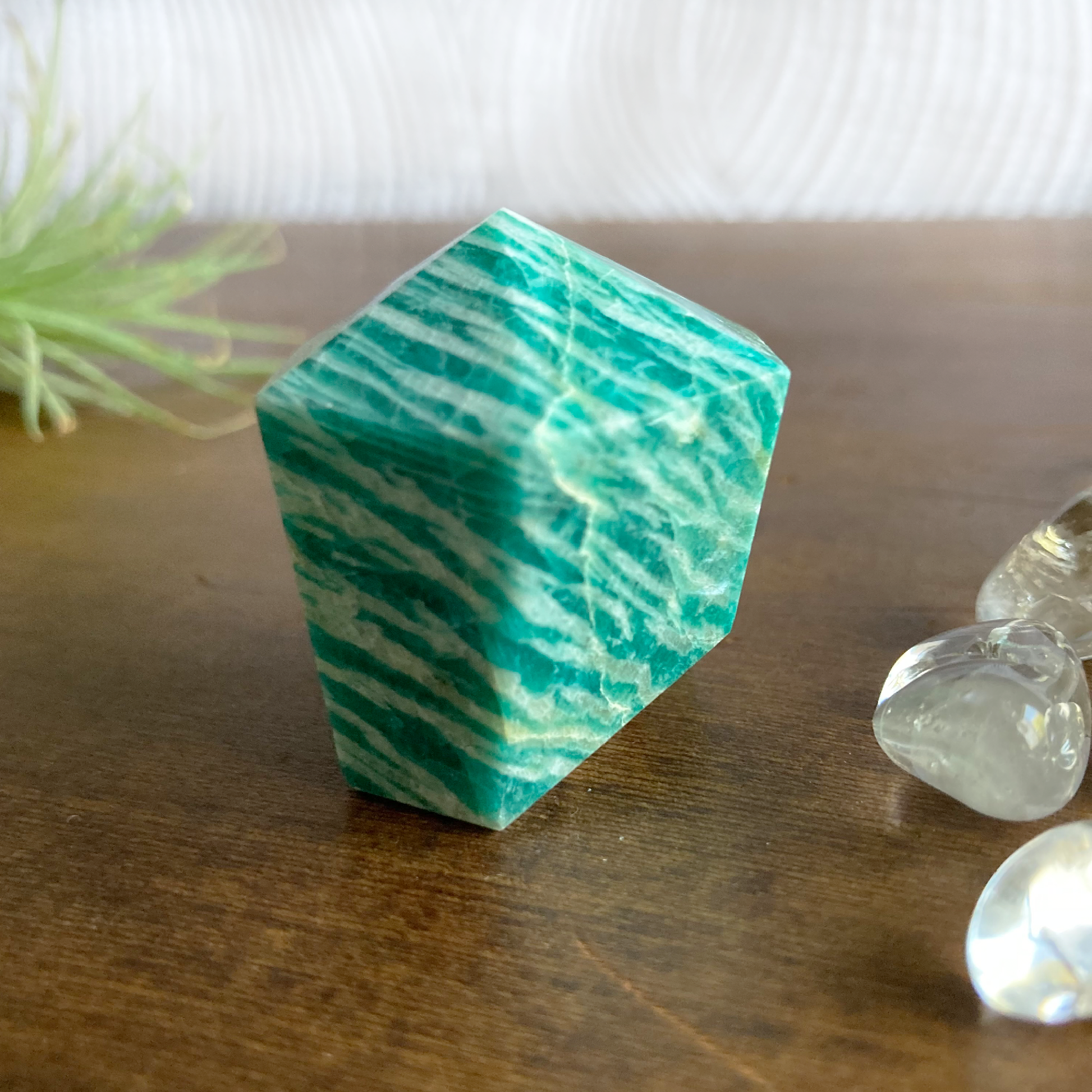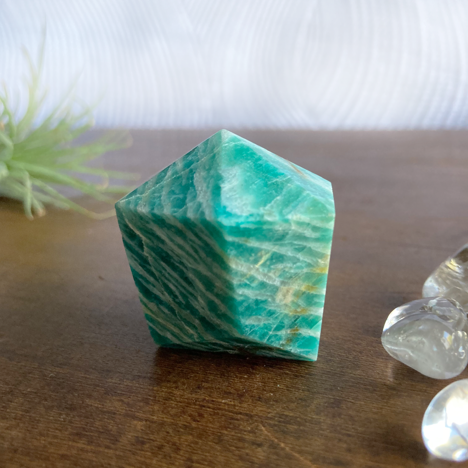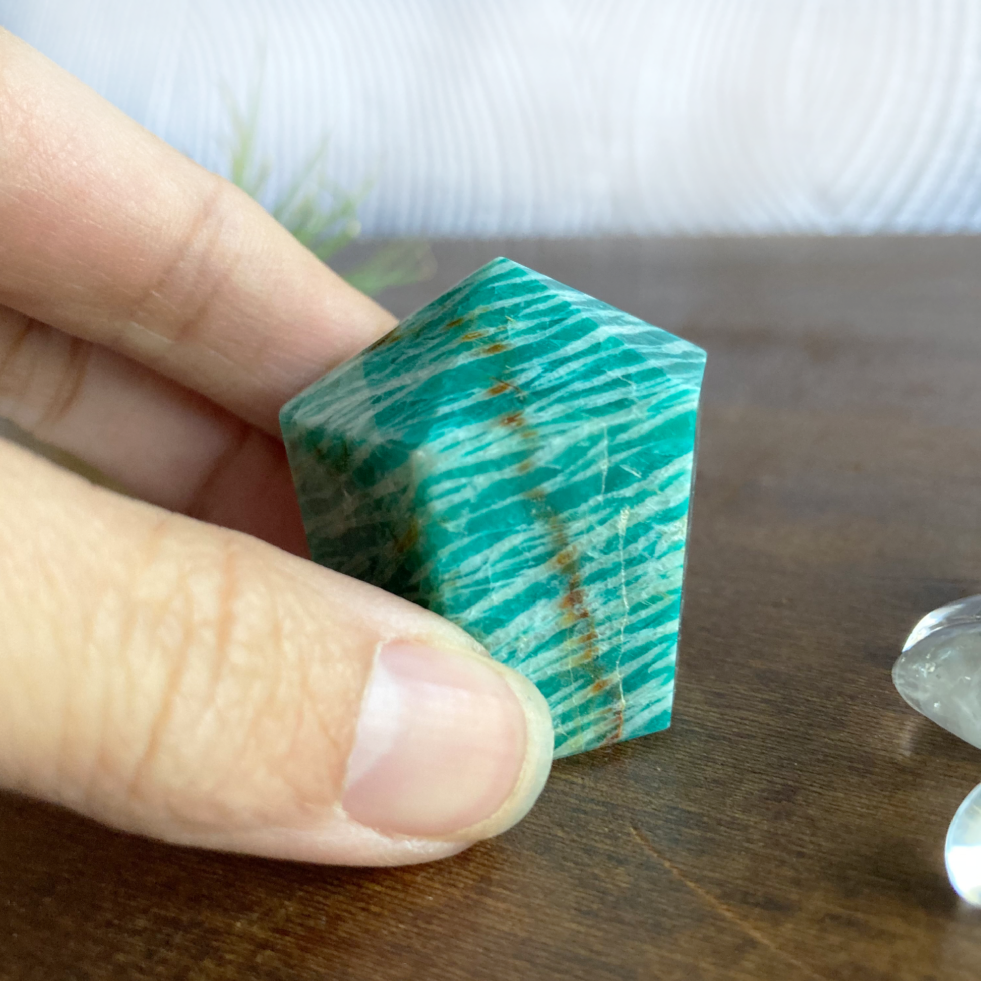 1.5" 'Mini Muffin' Amazonite Tower #0H, Green Gemstone, Self-Standing Natural Amazonite, Throat Chakra, Shedding Fears, Harmony, Integrity, Green Gemstone, Meditation Altar Space, Desk Decor, Bohemian Home Decor