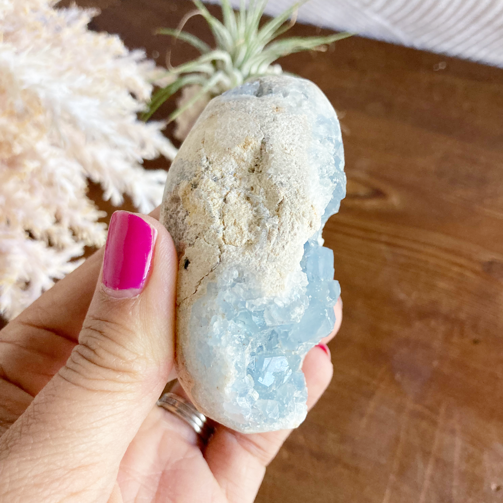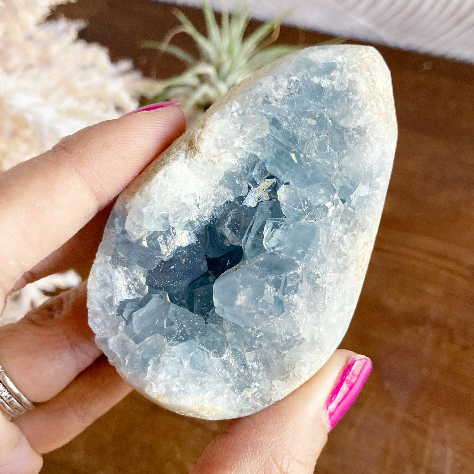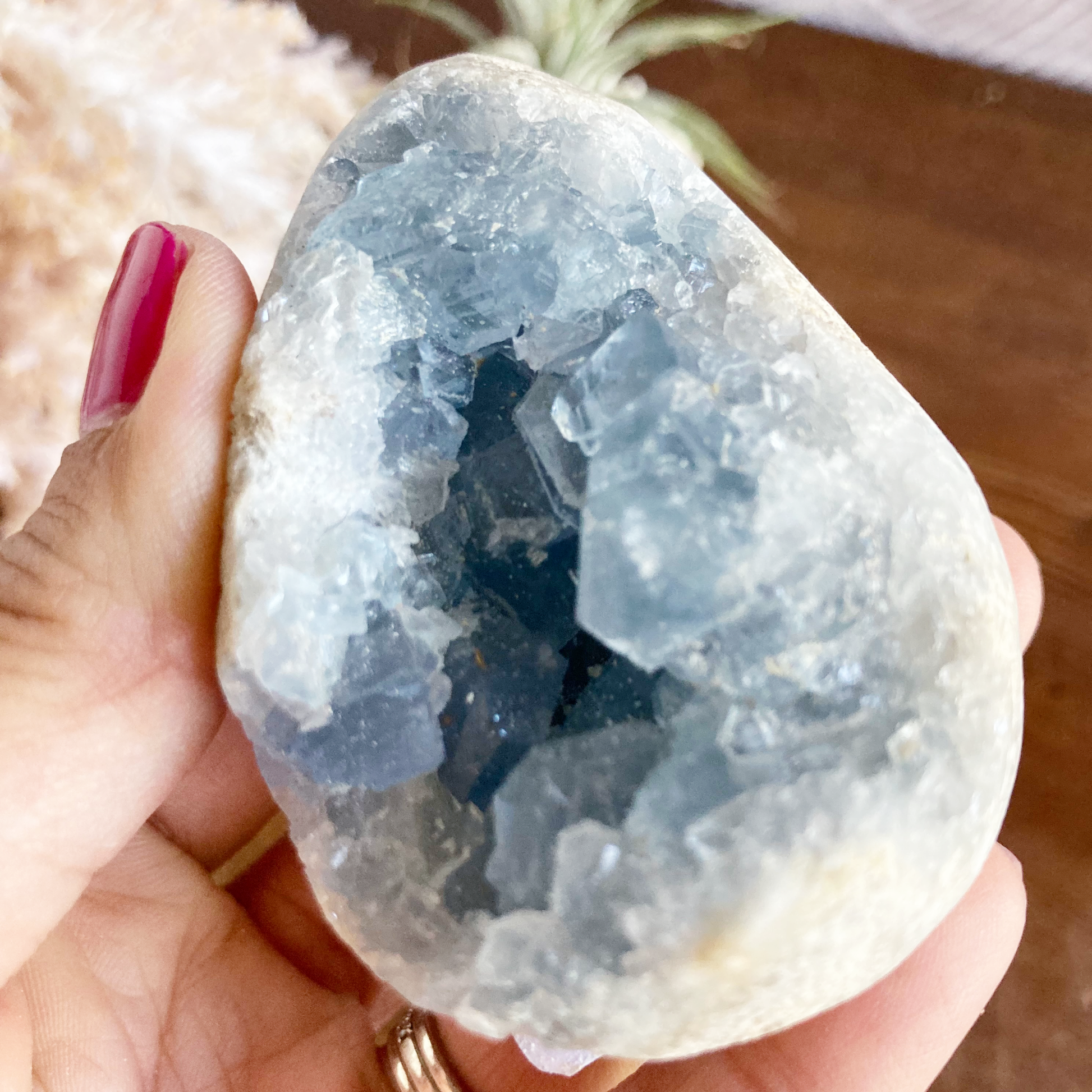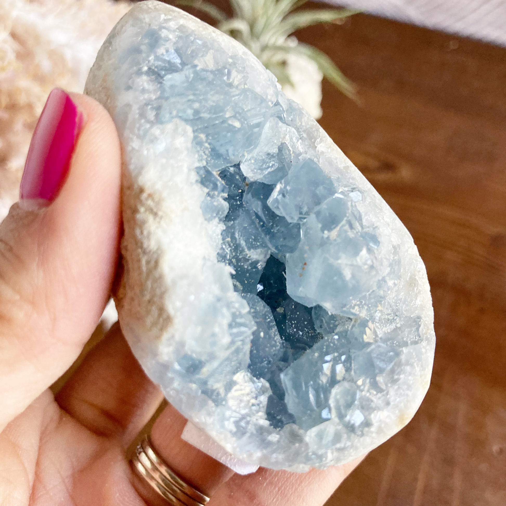 ✨ CELESTITE brings an immediate sense of inner peace as it channels the divine energies of angelic realms. The deep peace it exudes helps to calm fiery emotions, assists with conflict resolution and helps maintain a harmonious atmosphere in the midst of stress.