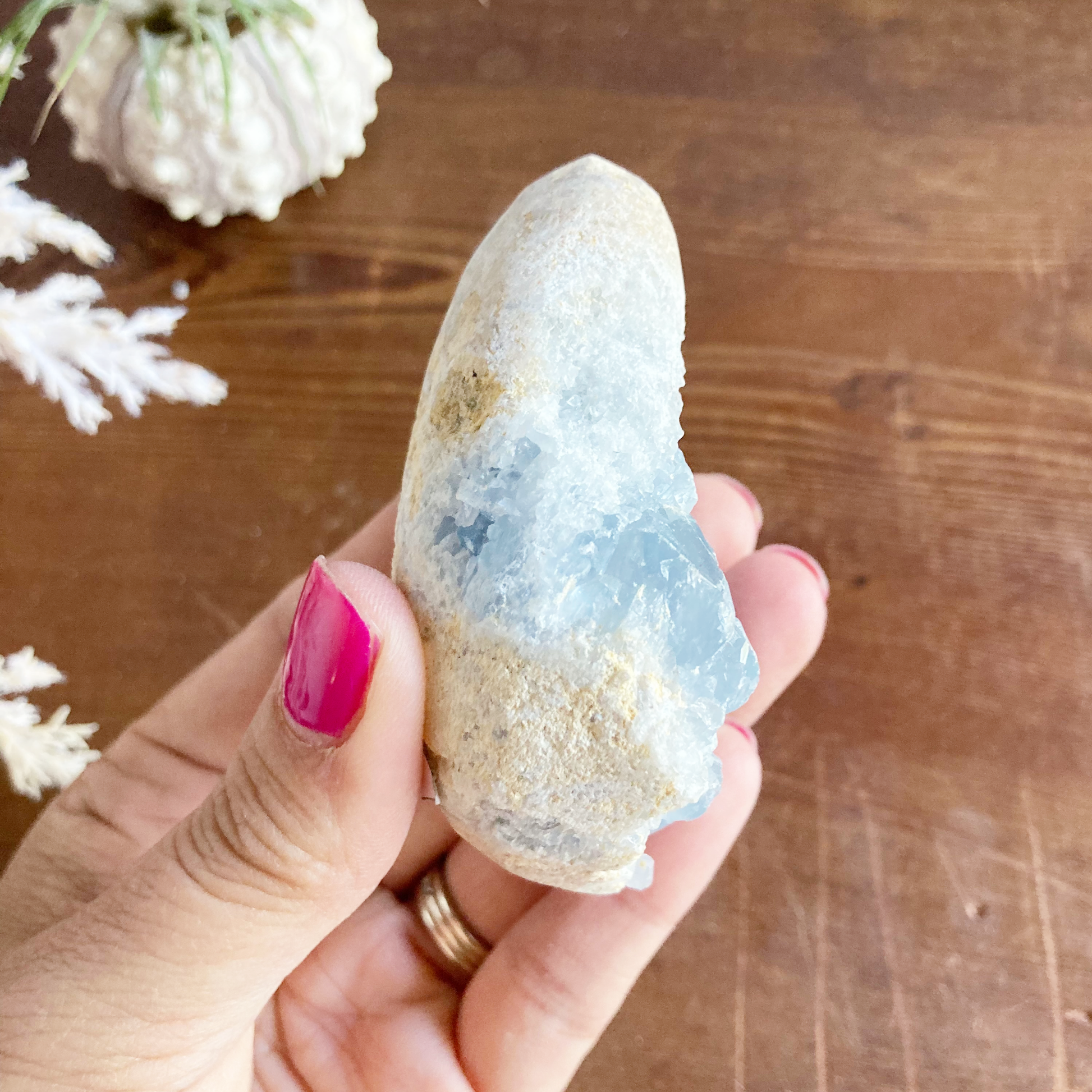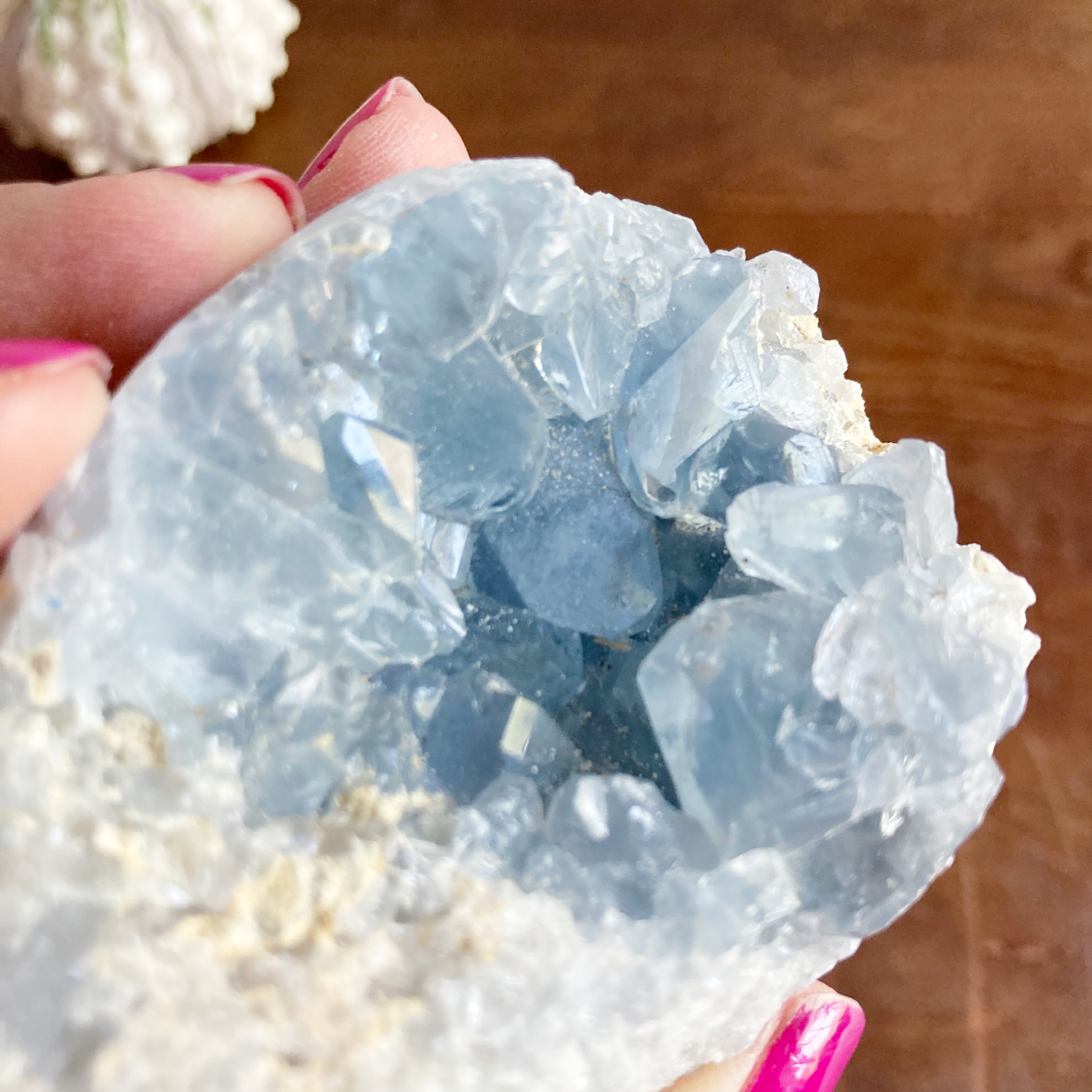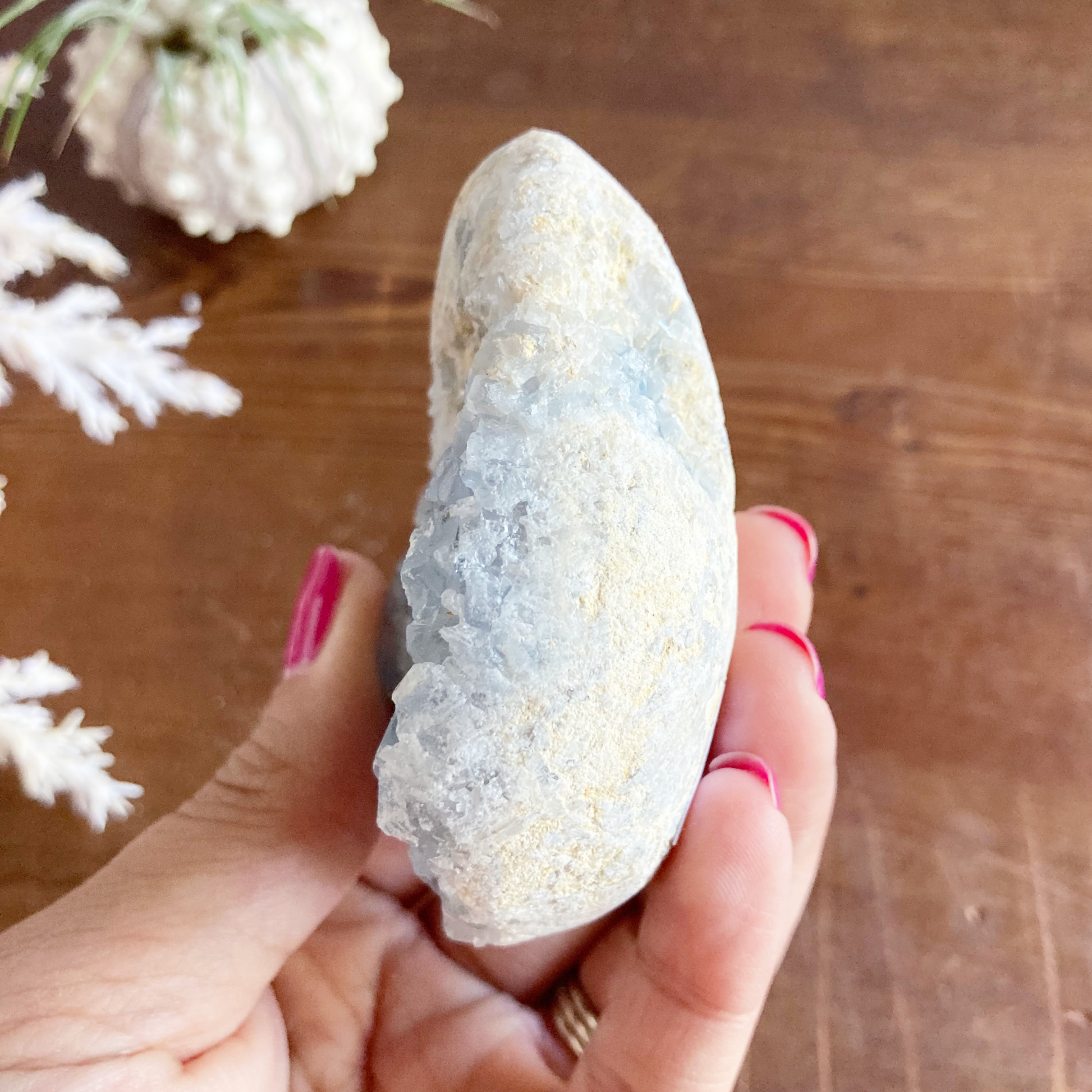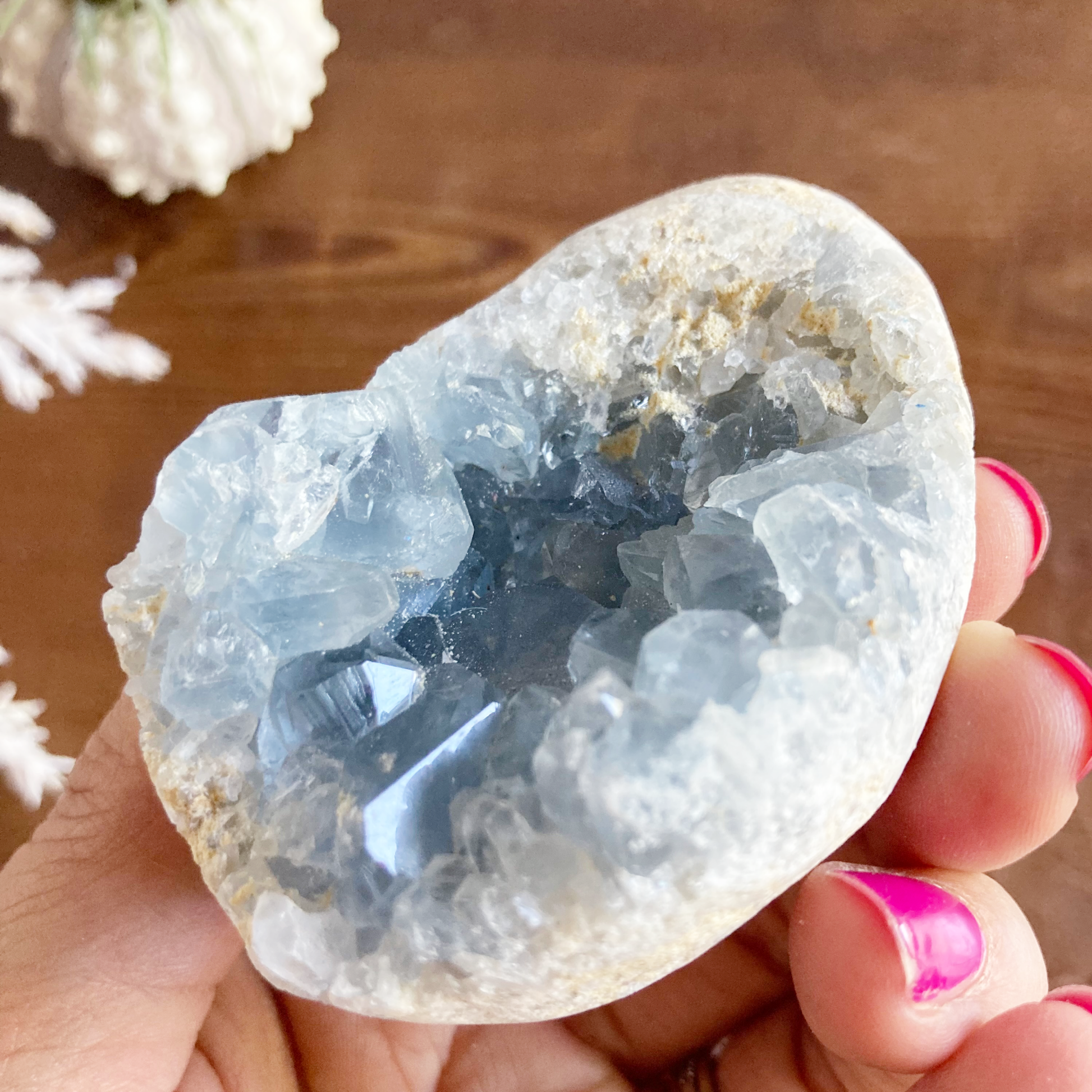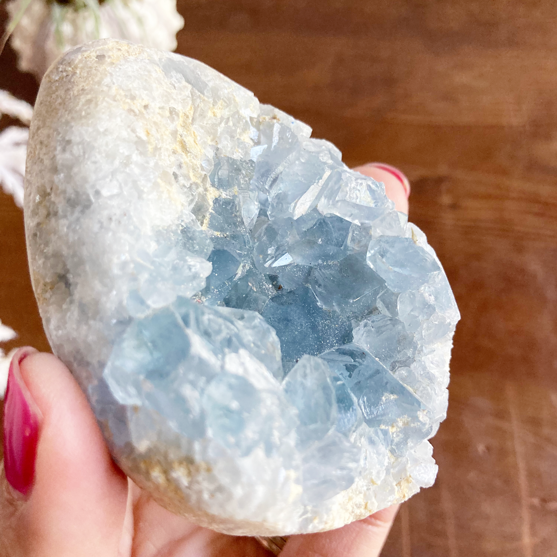 ✨ CELESTITE brings an immediate sense of inner peace as it channels the divine energies of angelic realms. The deep peace it exudes helps to calm fiery emotions, assists with conflict resolution and helps maintain a harmonious atmosphere in the midst of stress.