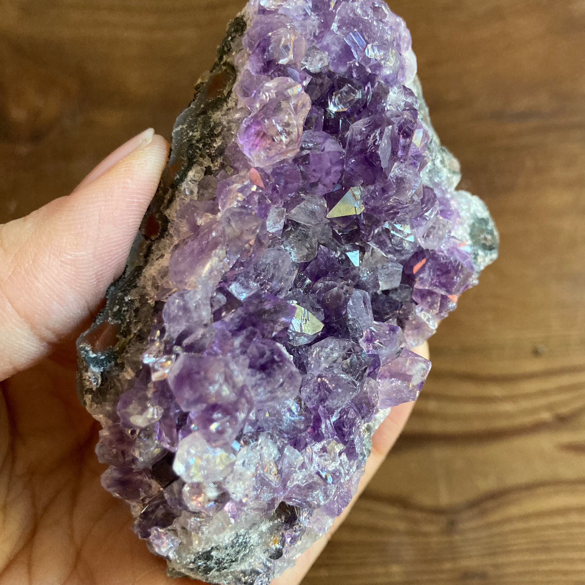 Royal PURPLE AMETHYST opens the crown chakra, how we see and respond to events and the world around us, and the third eye, our center of perception. As one of the most popular and accessible stones, its ability to protect and purify makes it frequently utilized in grids, jewelry, and home decor.Â
