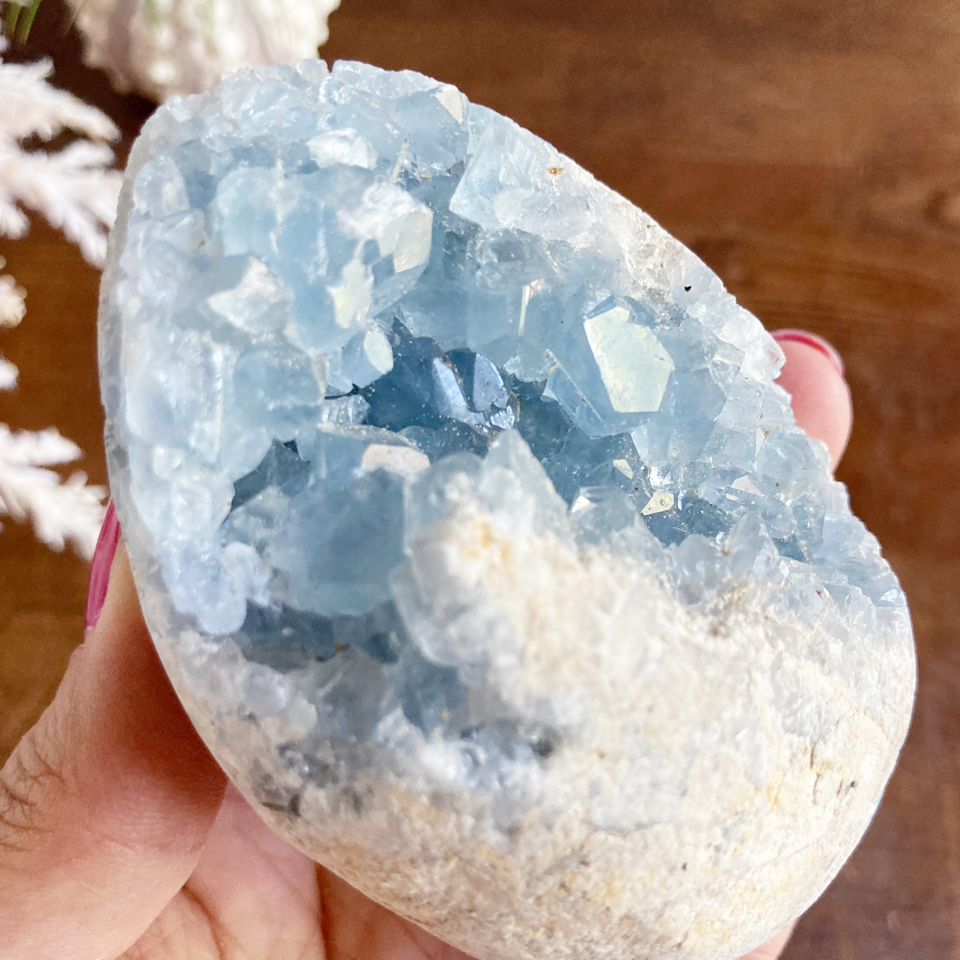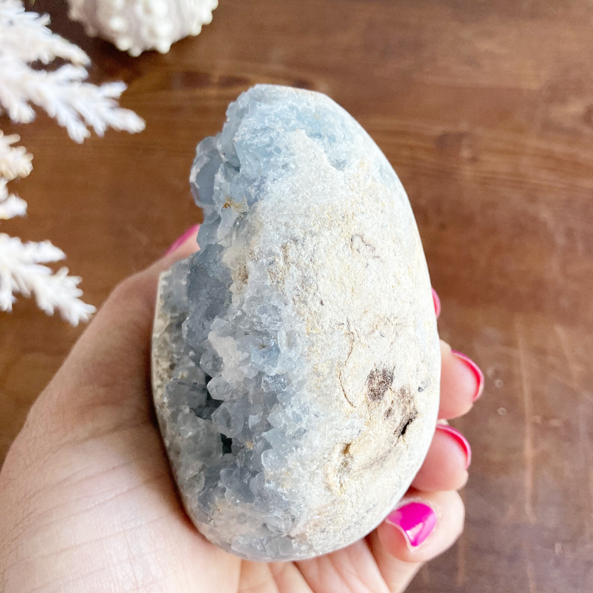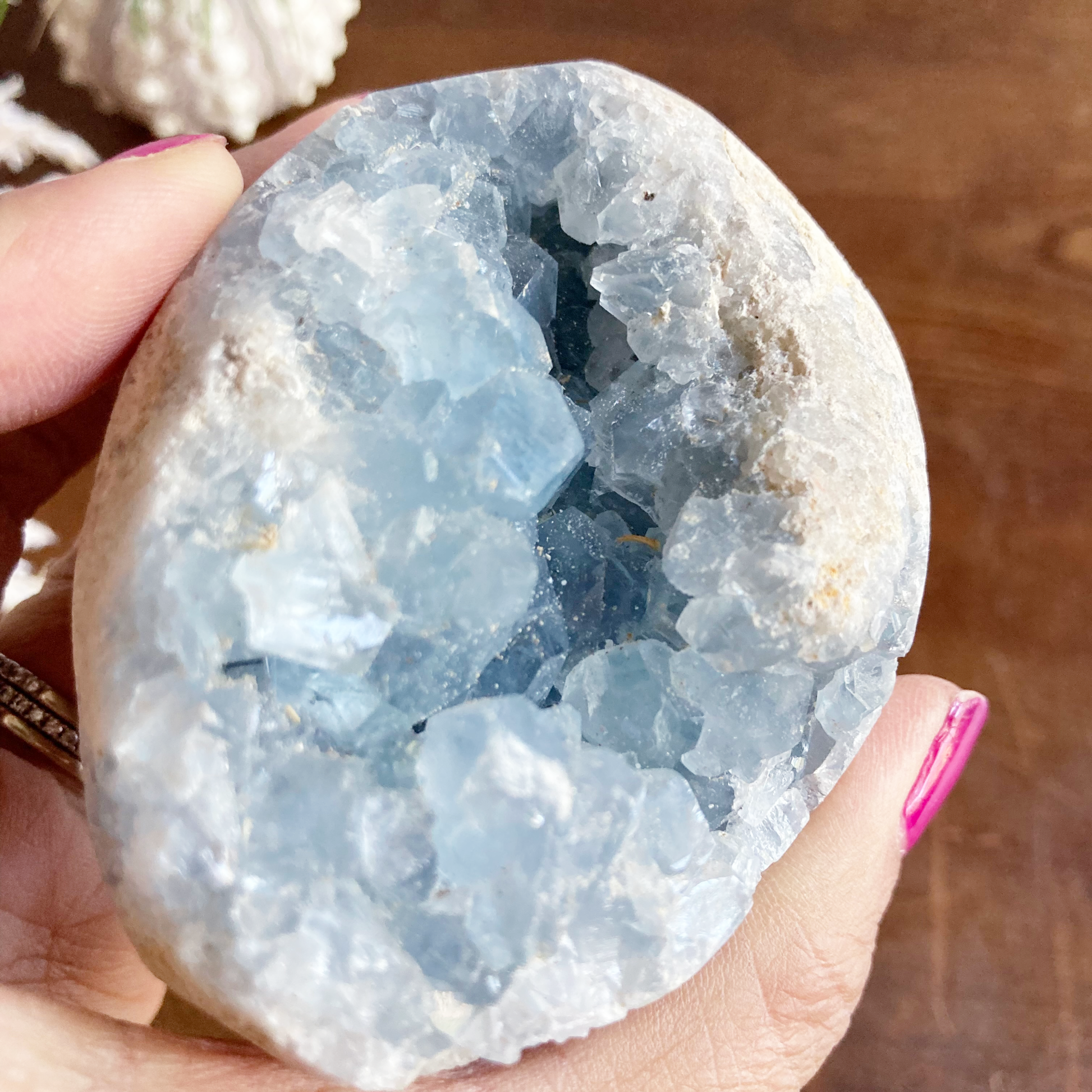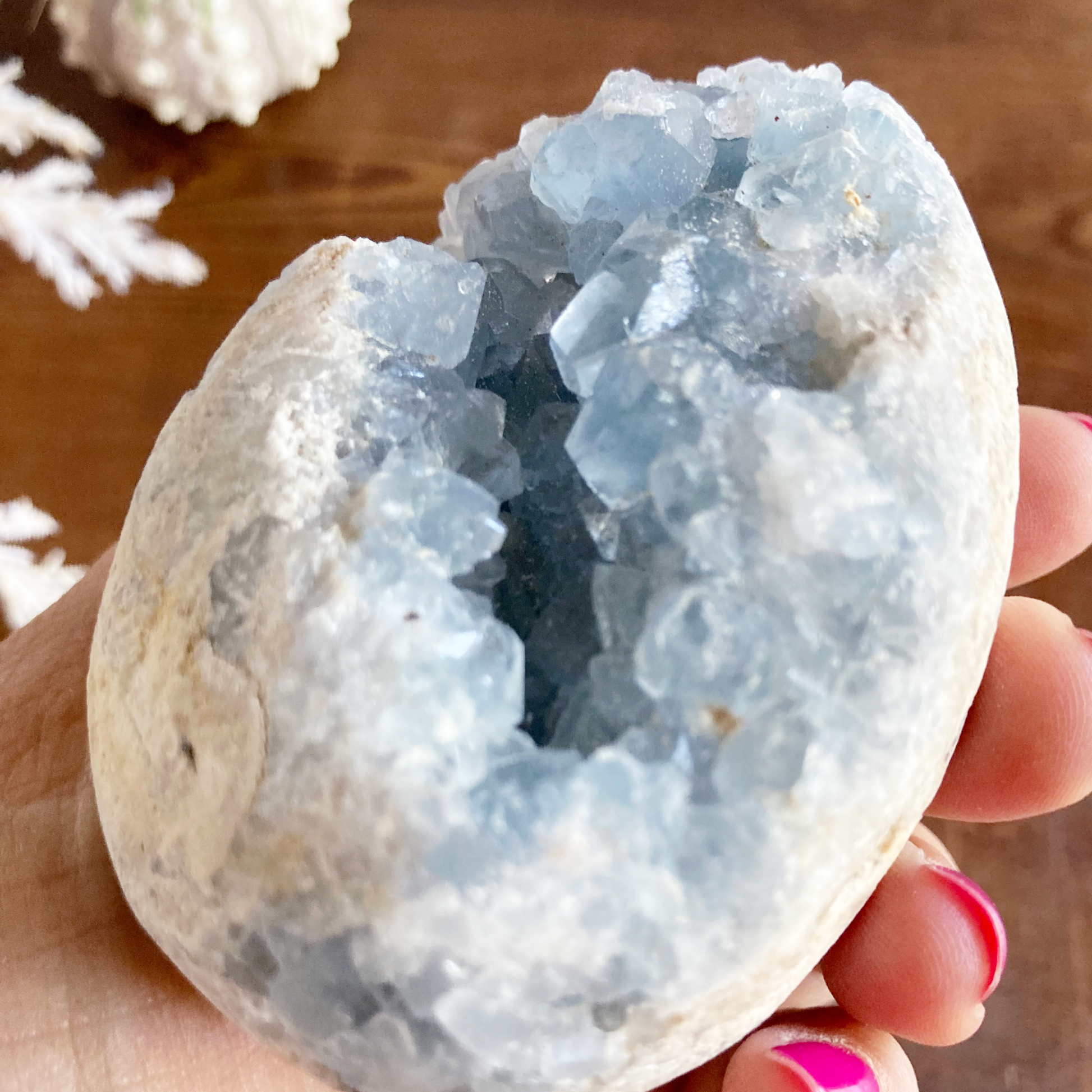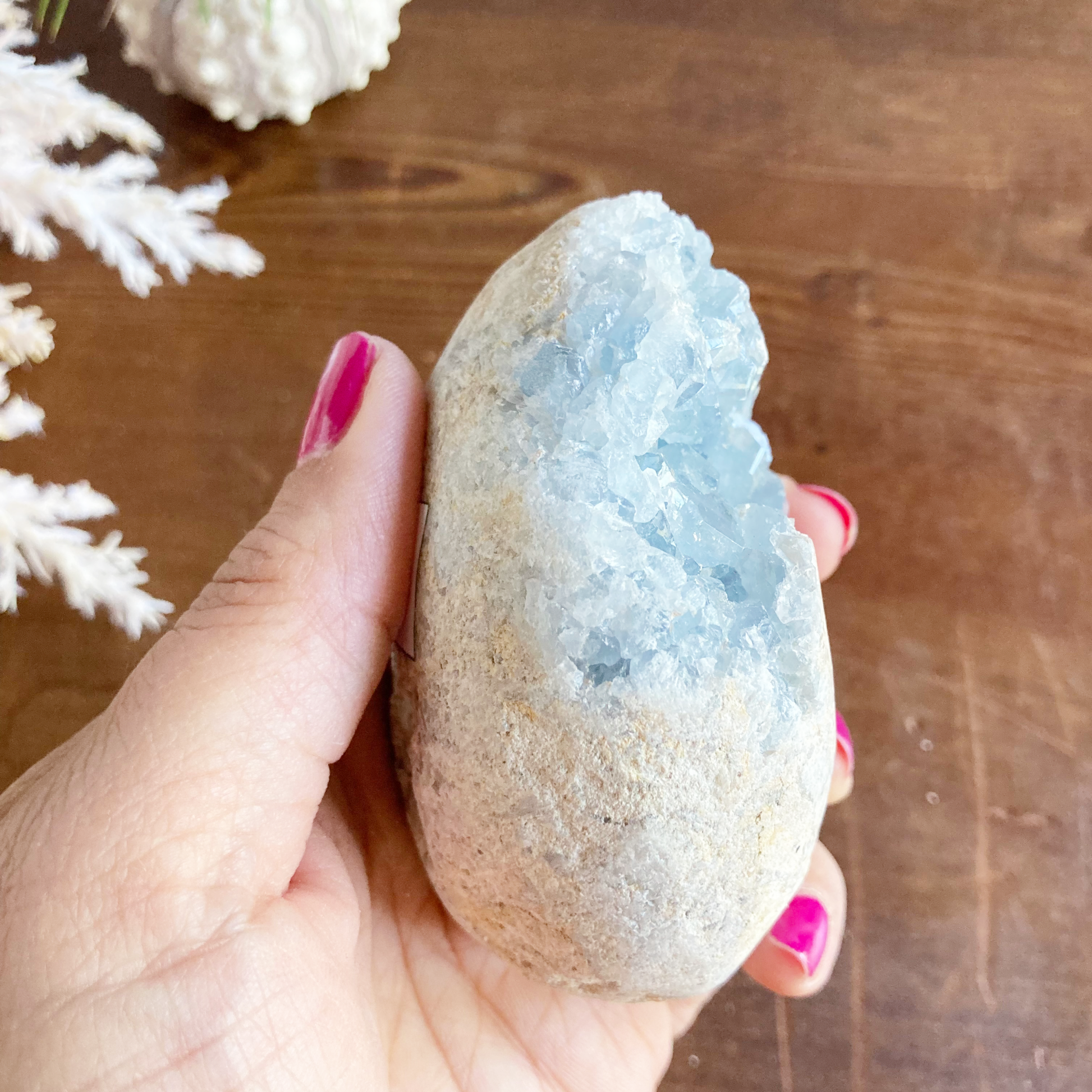 ✨ CELESTITE brings an immediate sense of inner peace as it channels the divine energies of angelic realms. The deep peace it exudes helps to calm fiery emotions, assists with conflict resolution and helps maintain a harmonious atmosphere in the midst of stress.
