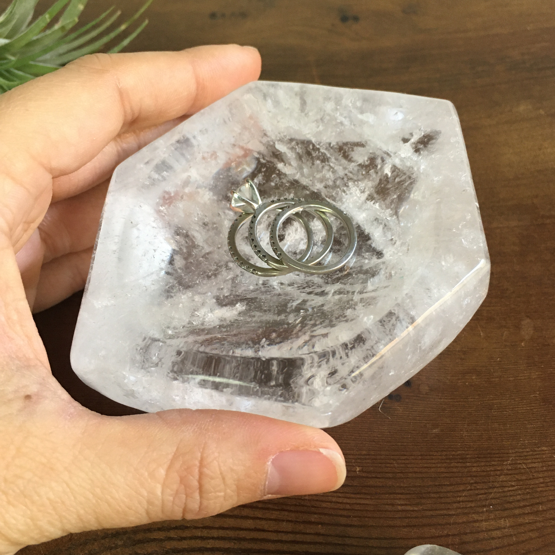 4" Hexagon Clear Quartz Bowl #0A, Trinket Holder, Soap Dish, Jewelry Organizer, Ritual Bowl, Sage, Palo Santo, Tumbled Stone Storage, Meditation Room, Bohemian Nursery, Boho Home Decor, Decorative Accents, Office Desk, Vanity, Mothers Day Gift, Birthday Gift, Housewarming