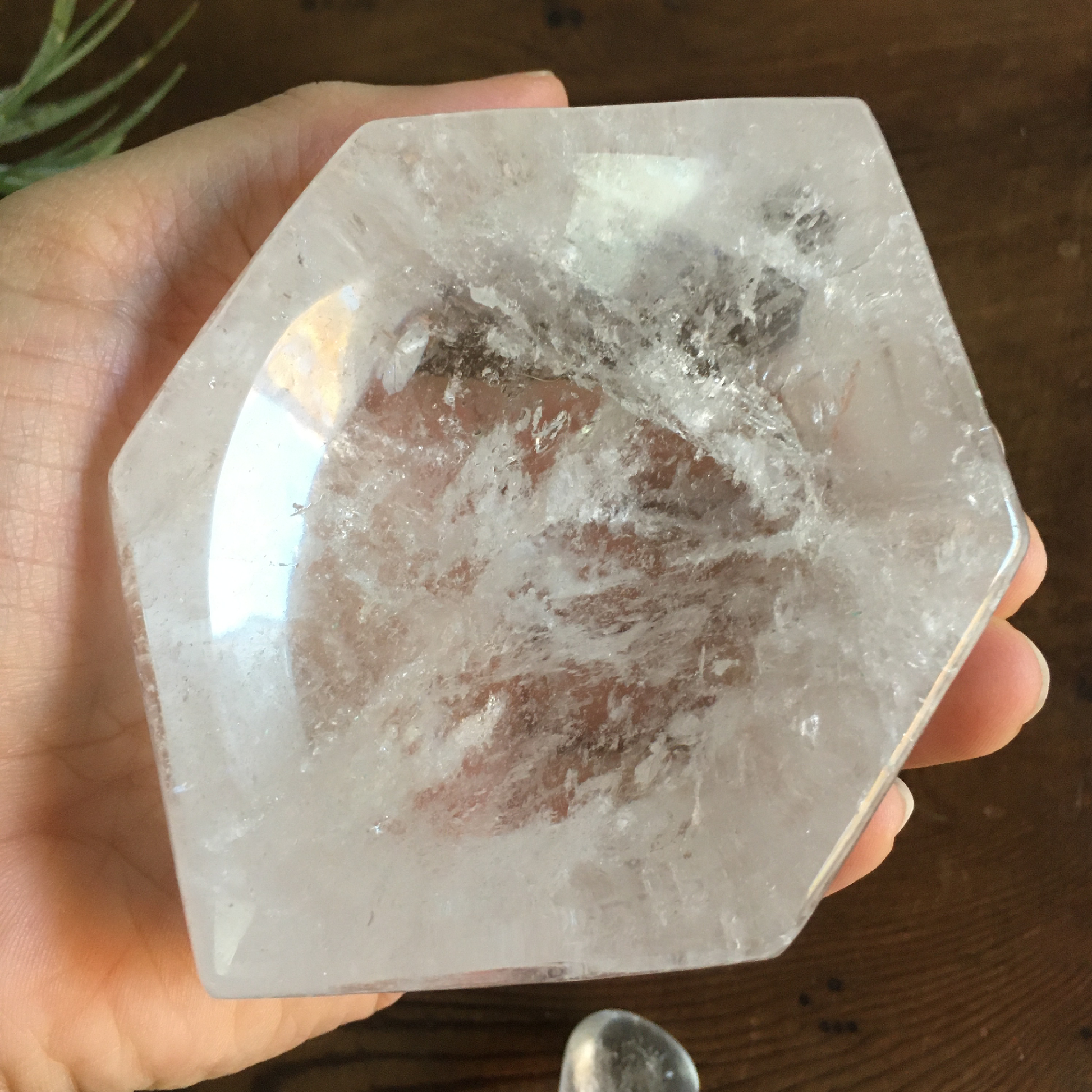 ✨ Clear quartz brings powerful healing and amplifying energy into your home. Whether as a radiating energy source on your prayer altar for meditation or as a home decor statement piece on your nightstand or mantel, this clear quartz bowl will immerse you in good vibes.