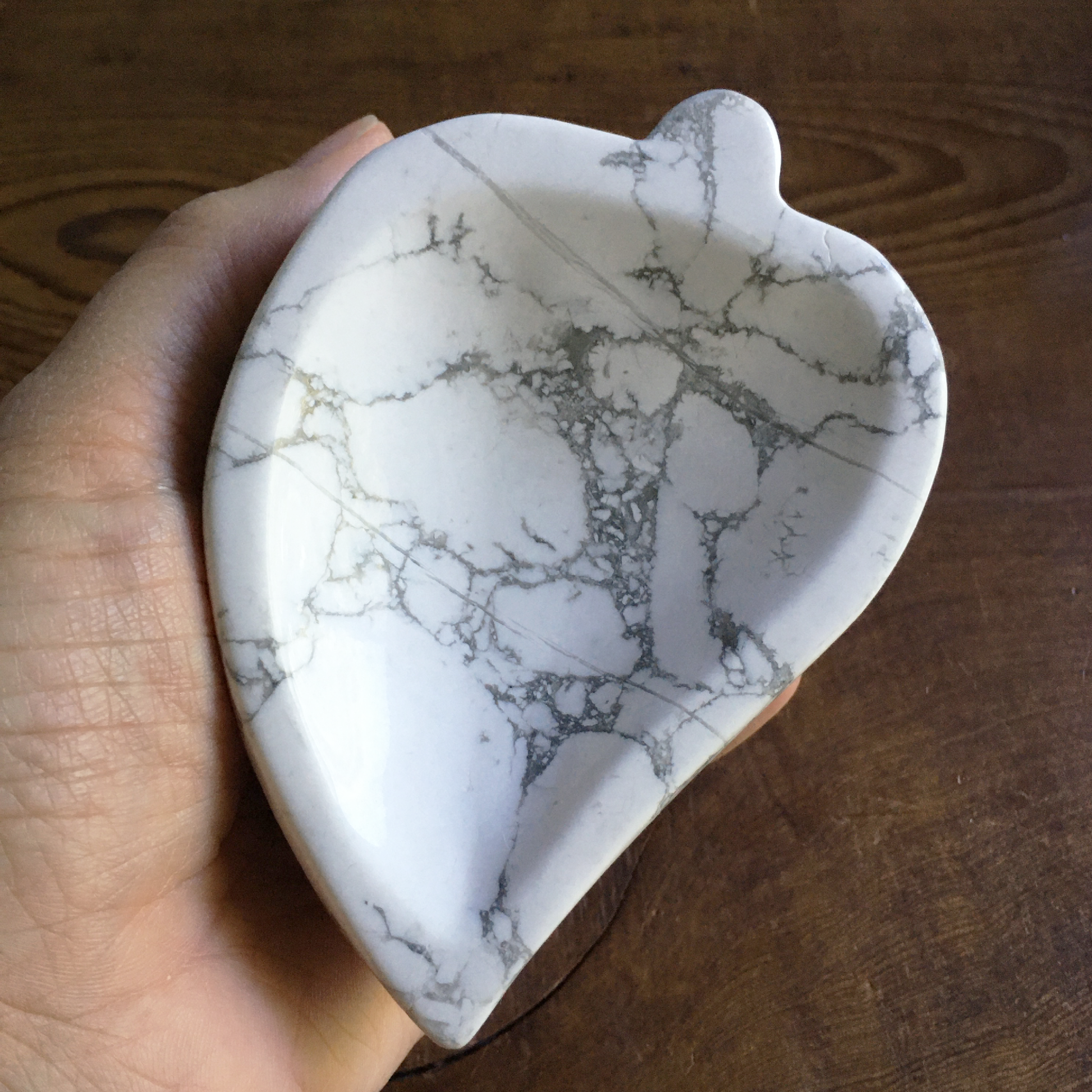4" Leaf Howlite Bowl #0B, Sleep Aid Stone, Anti-Anxiety, Crown Chakra, Third Eye Chakra, Higher Perspective, Trinket Holder, Soap Dish, Jewelry Organizer, Ritual Bowl, Sage, Palo Santo, Tumbled Stone Storage, Meditation Room, Bohemian Nursery, Boho Home Decor, Decorative Accents, Office Desk, Vanity