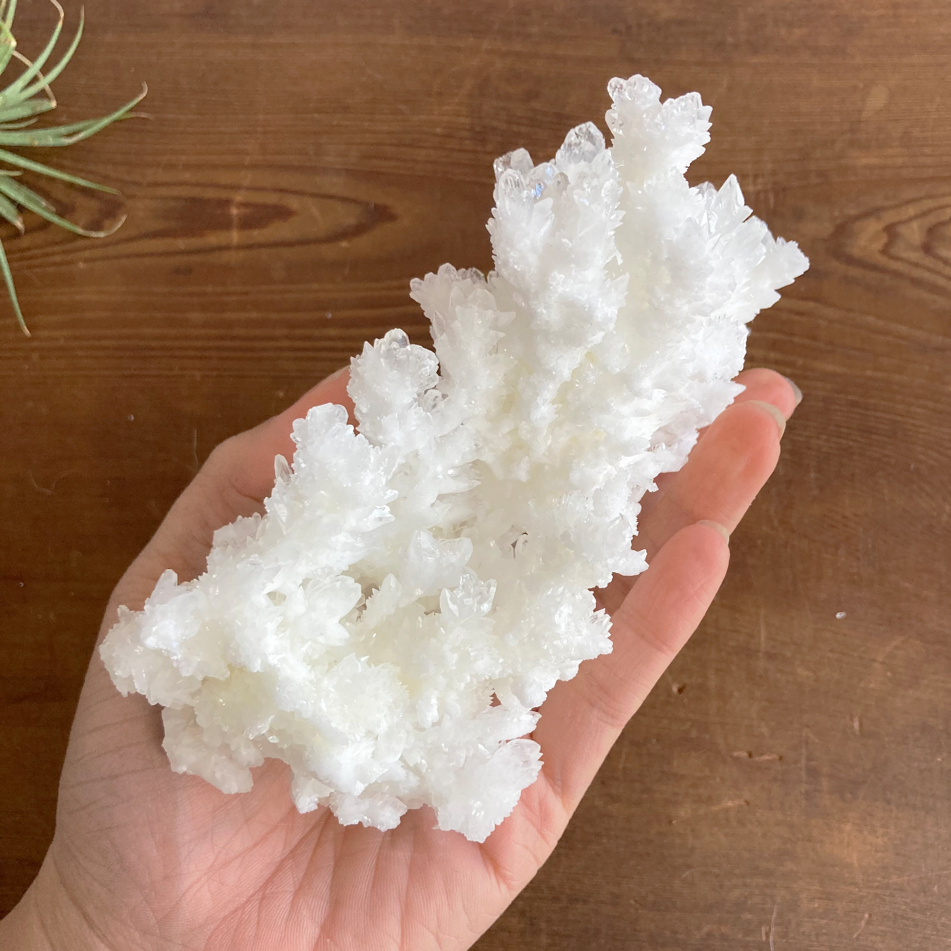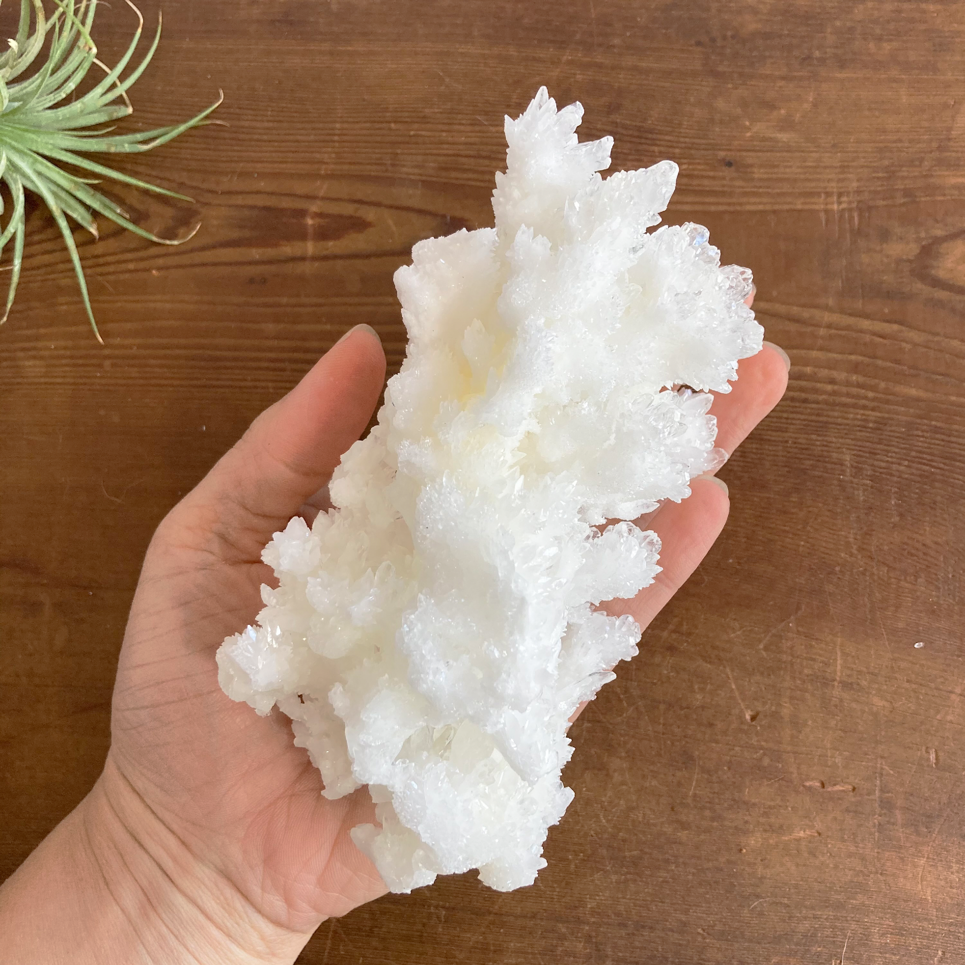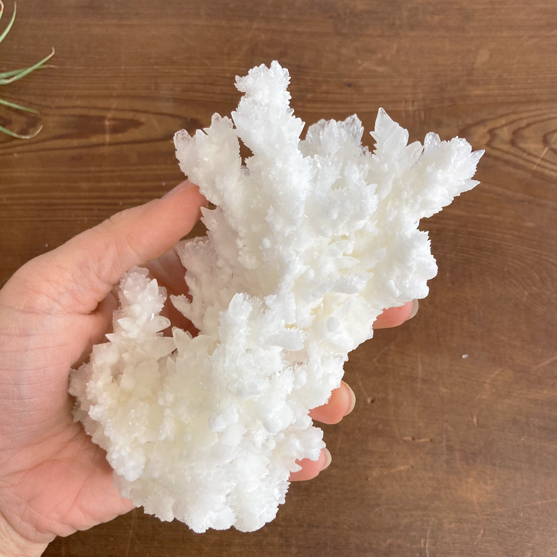 ⨠From the Potosi Mine of the Santa Eulalia District in Chihuahua, Mexico, WHITE ARAGONITE, also known as Cave Calcite, is a stalactite. It grows similar to the finger-like formations of ocean coral. Interestingly, Aragonite is a calcium carbonate mineral and is the main element in many shells, pearls, and corals. For this reason, we often refer to this variety of Aragonite as "Crystal Coral".