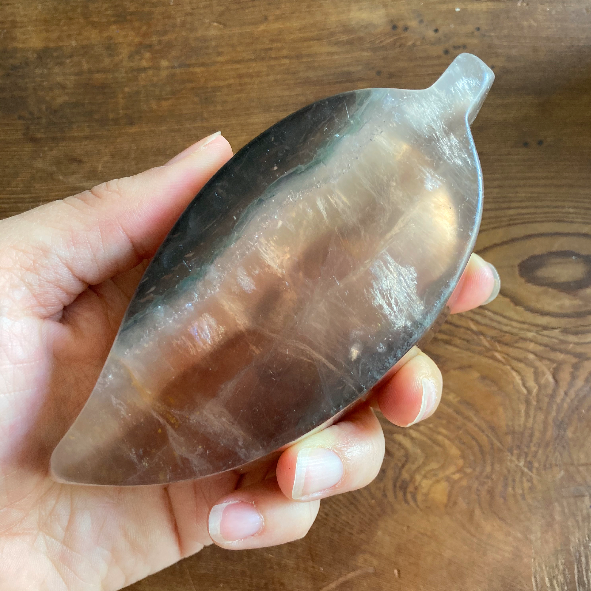 5" Leaf Pale Purple Fluorite Bowl #0D, Trinket Holder, Soap Dish, Jewelry Organizer, Ritual Bowl, Sage, Palo Santo, Tumbled Stone Storage, Meditation Room, Bohemian Nursery, Boho Home Decor, Decorative Accents, Office Desk, Vanity, Mothers Day Gift, Birthday Gift, Housewarming Gift
