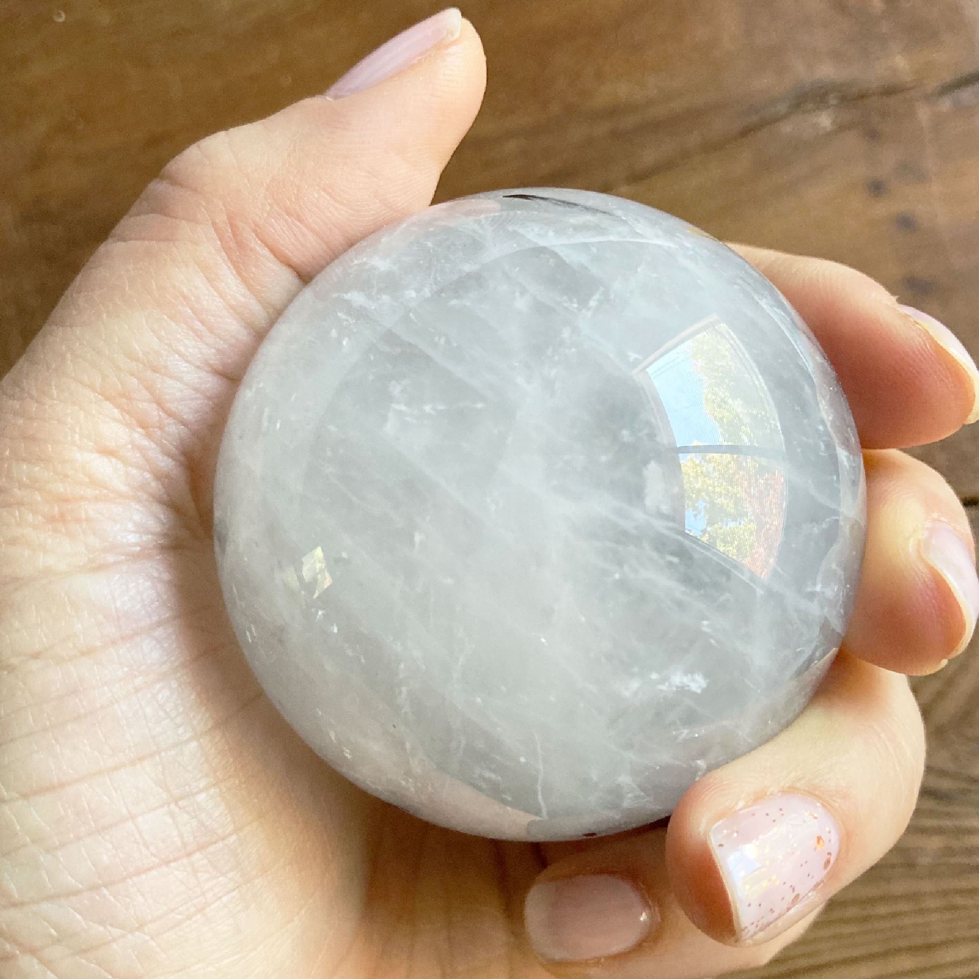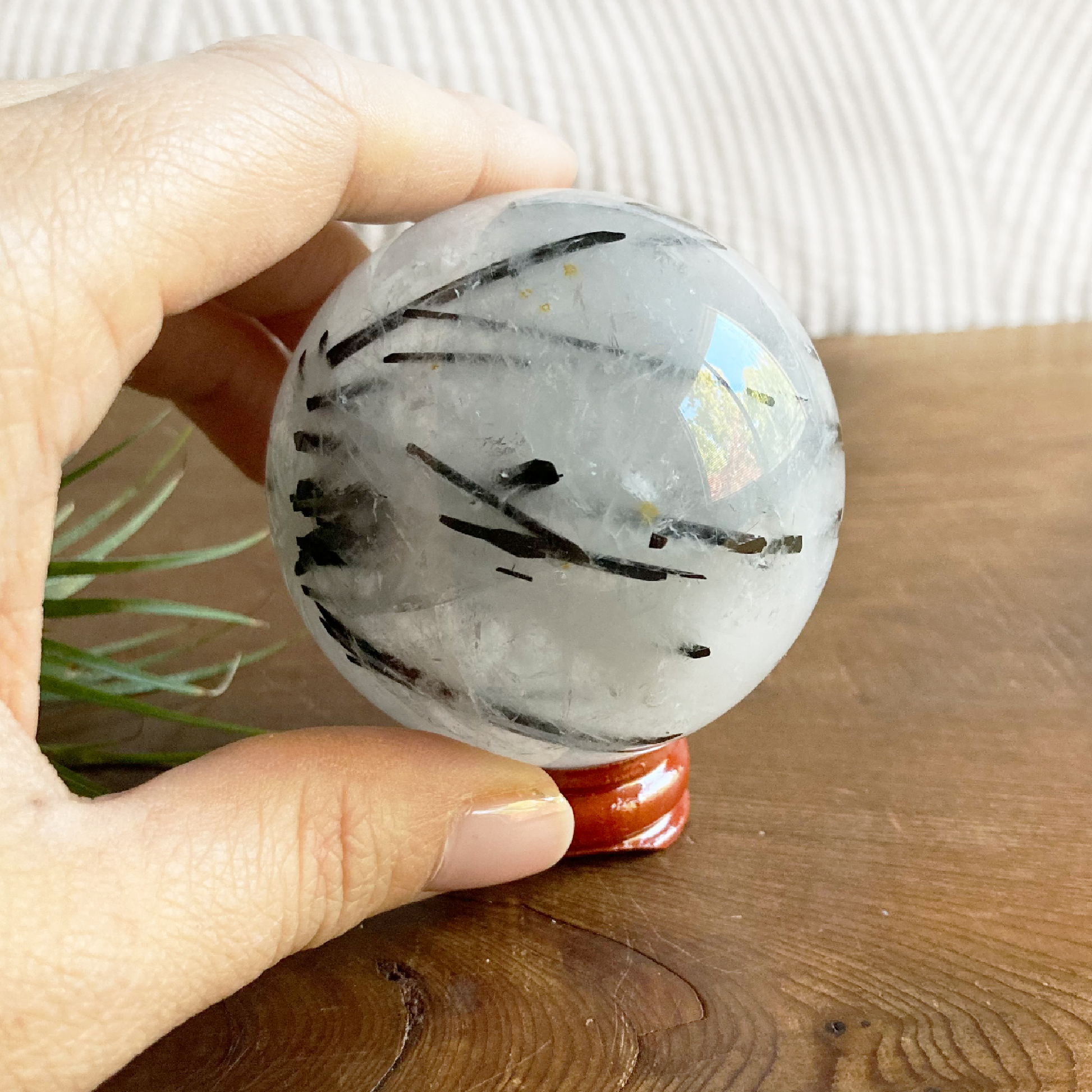 55mm Tourmalinated Quartz Sphere #0E, Polished Stone, Healing Crystals, Protection Against Negative Energy, Grounding, Energetic Cleansing, Root Chakra, Shamanic Stone, Reiki Healing Tools, Desk Display, Bohemian Decor