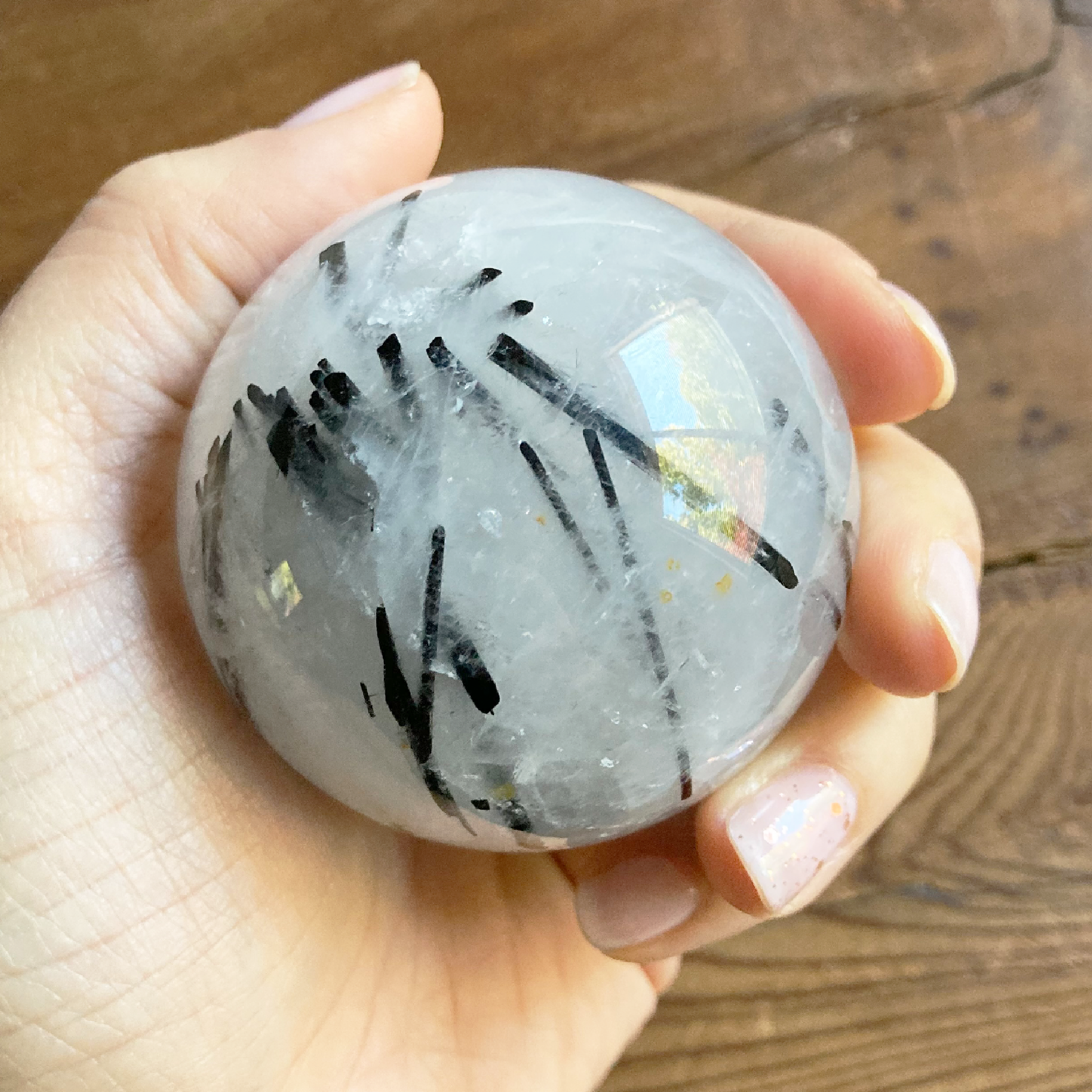 🤟 This listing is for the polished Tourmalinated Quartz Sphere in the photo