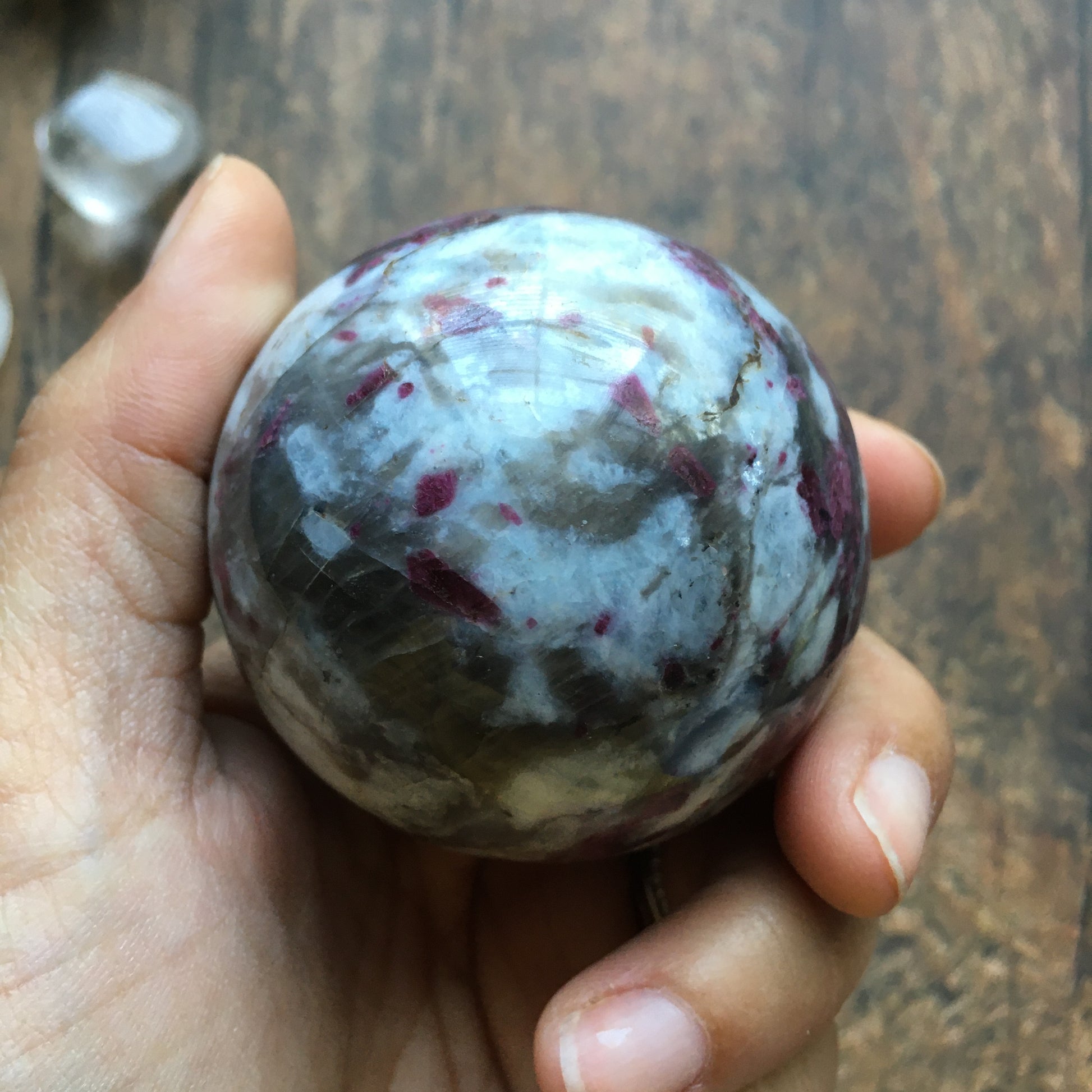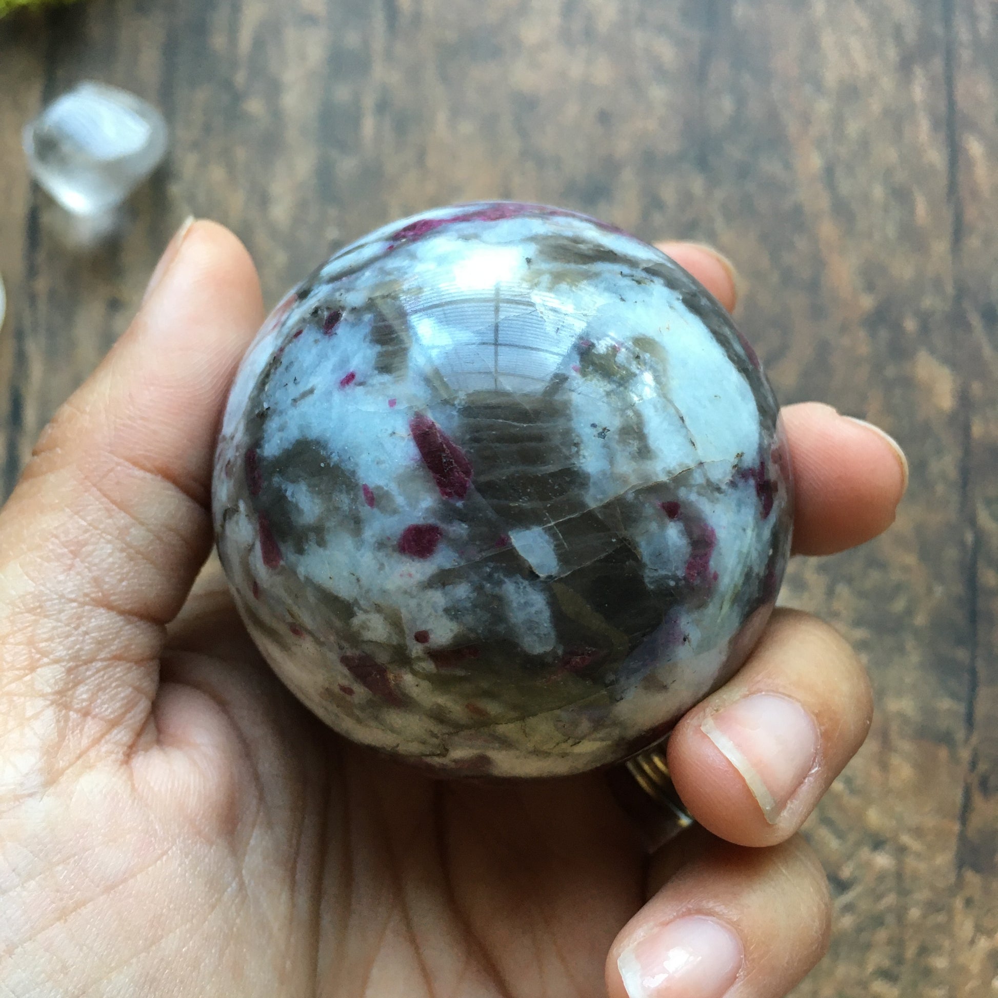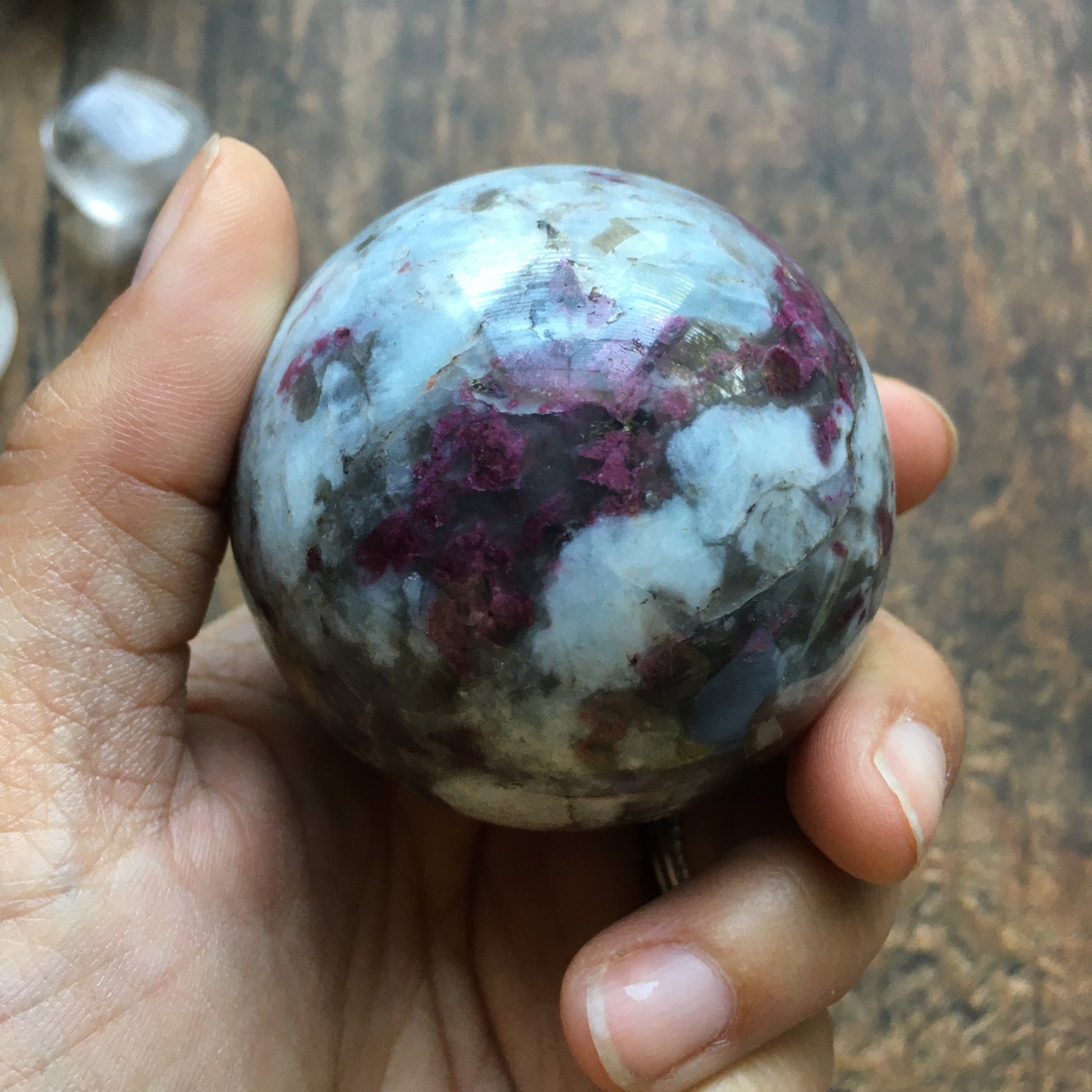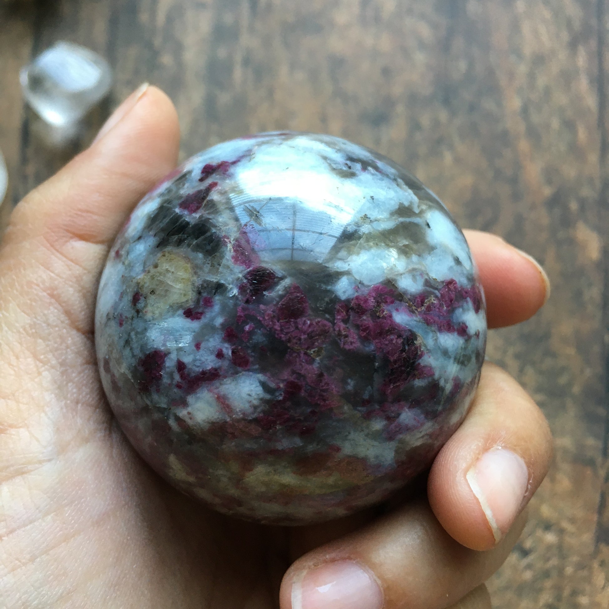 56mm Polished Rubellite Tourmaline Sphere, Dark Pink Tourmaline in Quartz, Purple Hue, Large Sphere, Desk Display, Bohemian Decor, Shamanic Stone, Heart Root Chakras, Desk Decor, Polished Gemstones, Reiki Healing Tools, Empowering Feminine Energy, Water Element