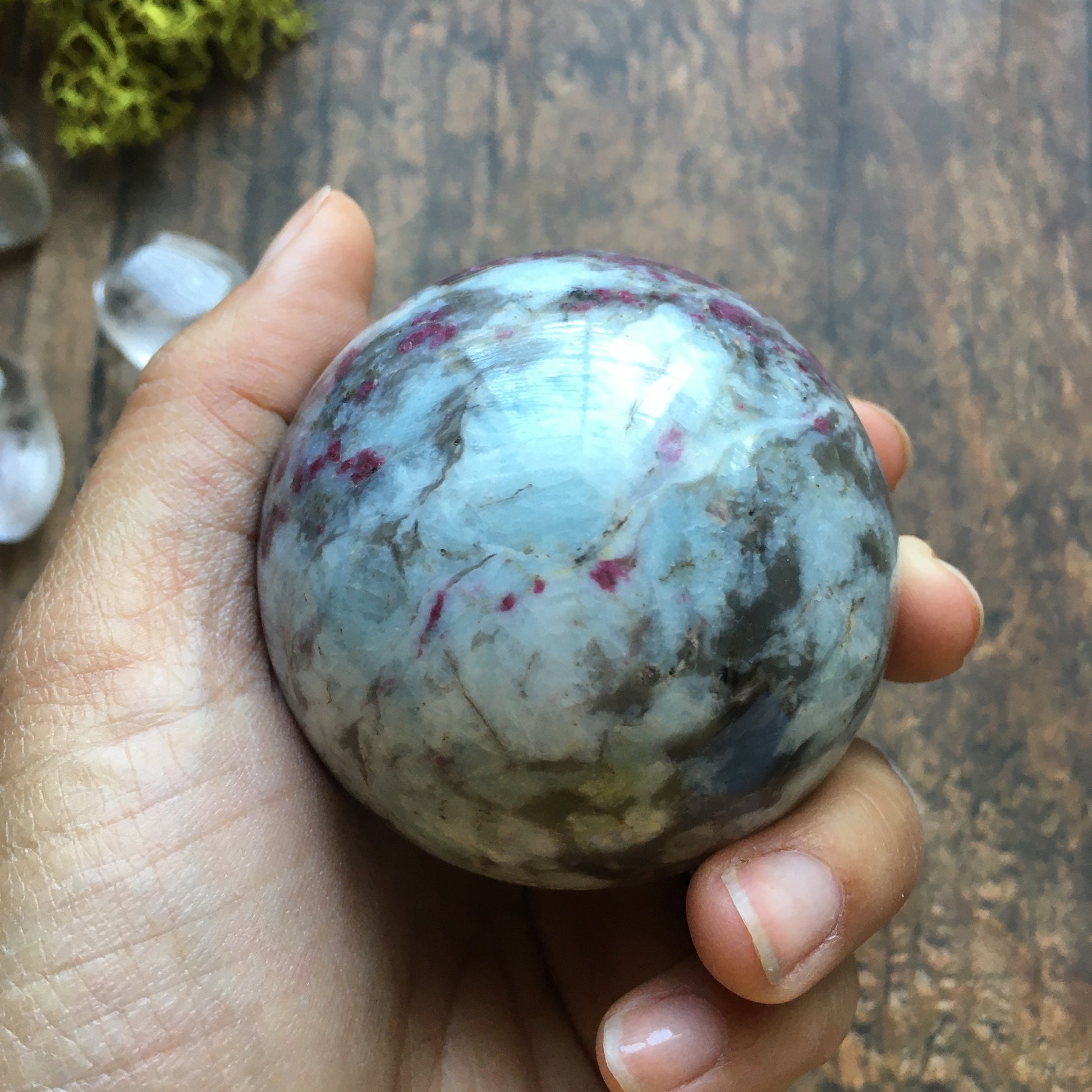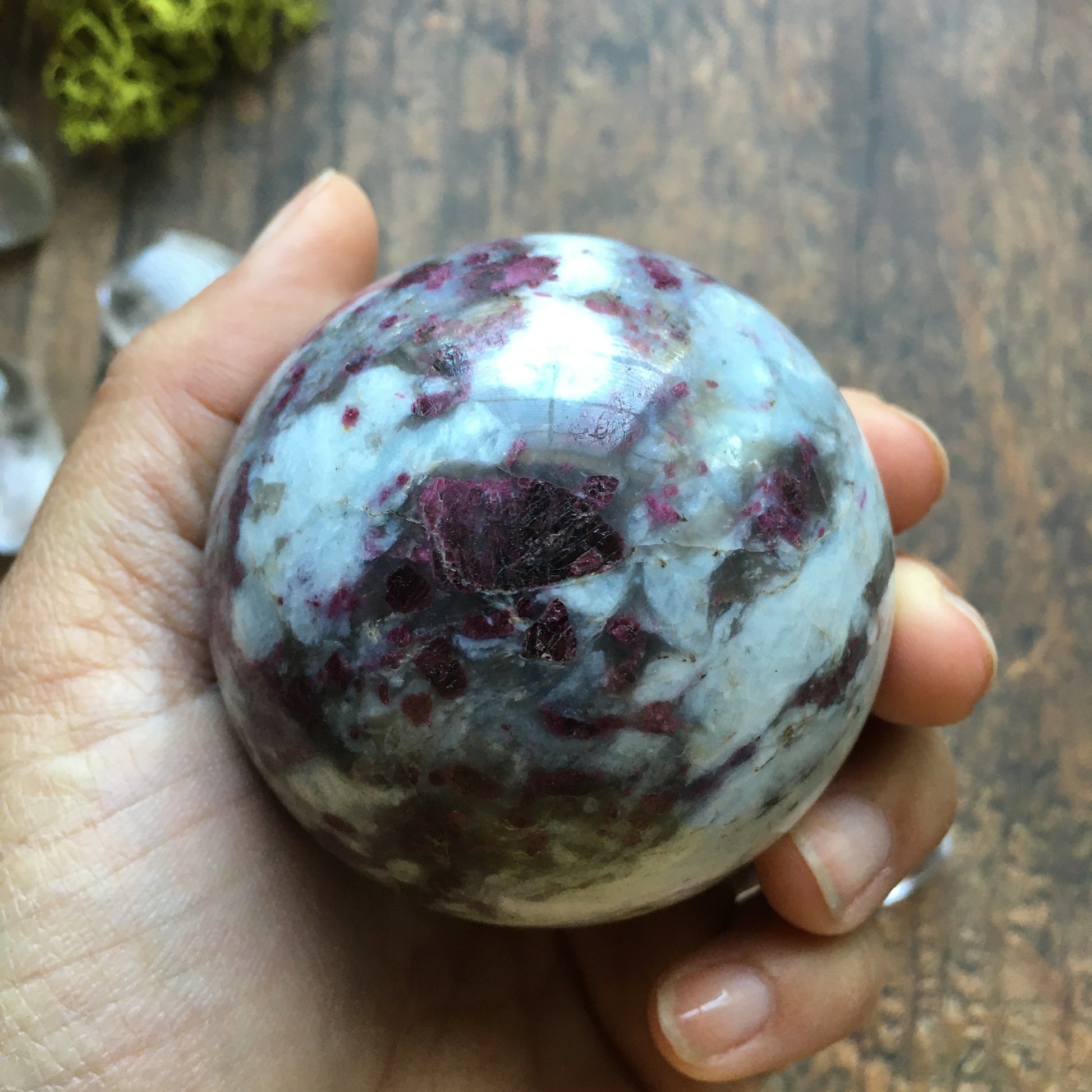 ✨ RUBELLITE comes from the Elbaite group which is a member of the Tourmaline family, thus RUBELLITE is also referred to as pink tourmaline. This sphere features dark pink tourmaline (it has almost a purple hue) in an amplifying white quartz matrix.