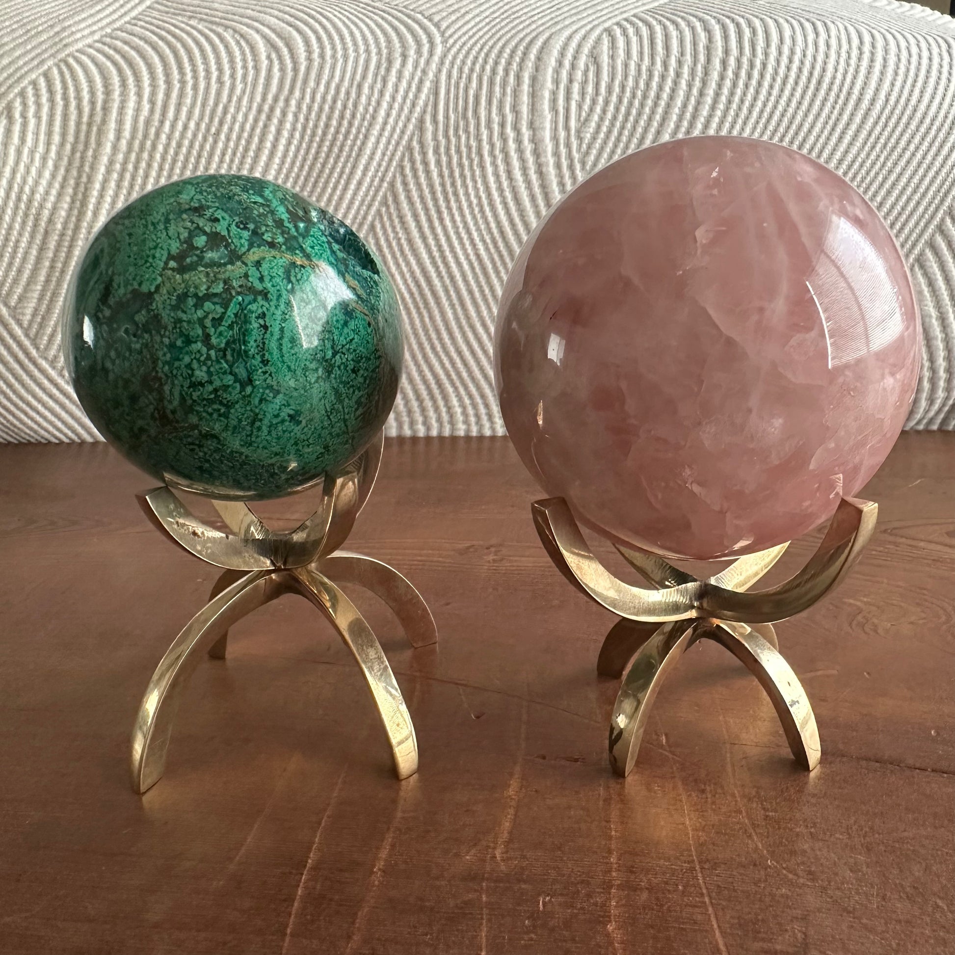 ✨ A chic brass decorative piece that also functions as a display stand for precious rocks or minerals. Great for highlighting spheres with a touch of sophistication and simplicity. Conveniently, the stand can be inverted on either side to accommodate crystals of different sizes.