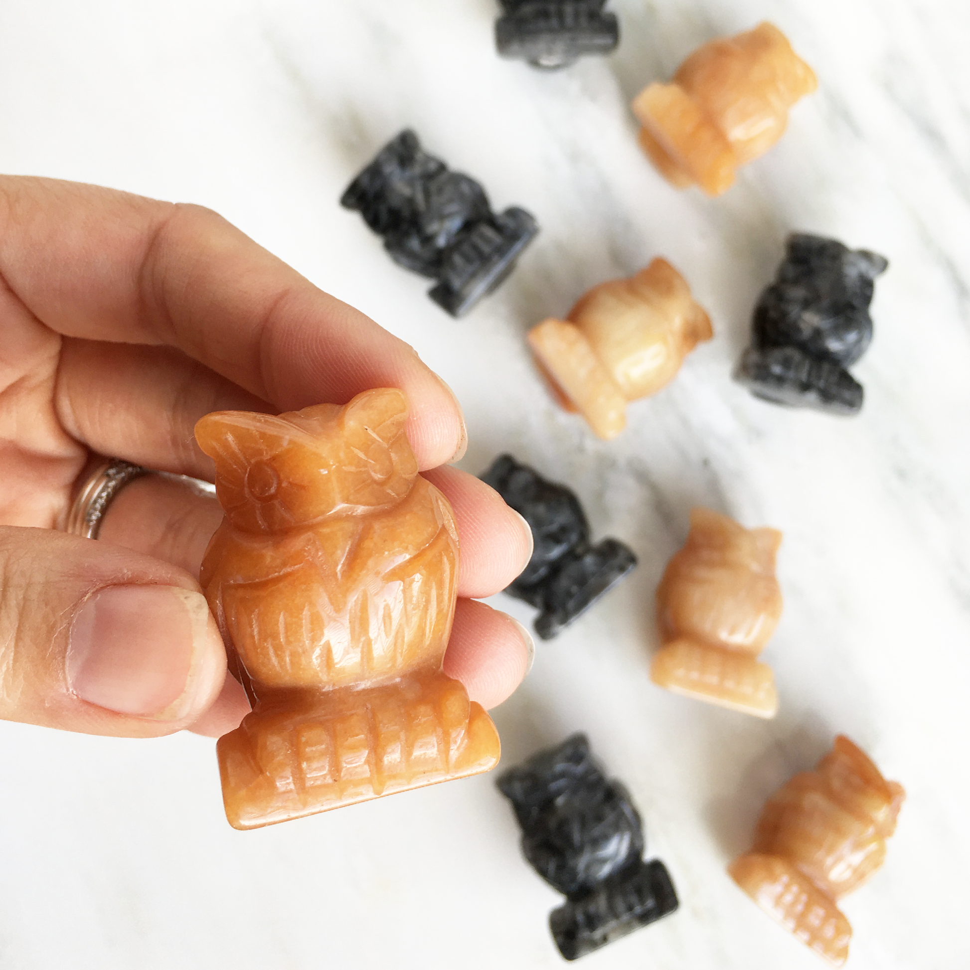 🤟 This listing is for (1) intuitively selected Orange Aventurine Owl or Indigo Gabbro Owl similar to that in the photo