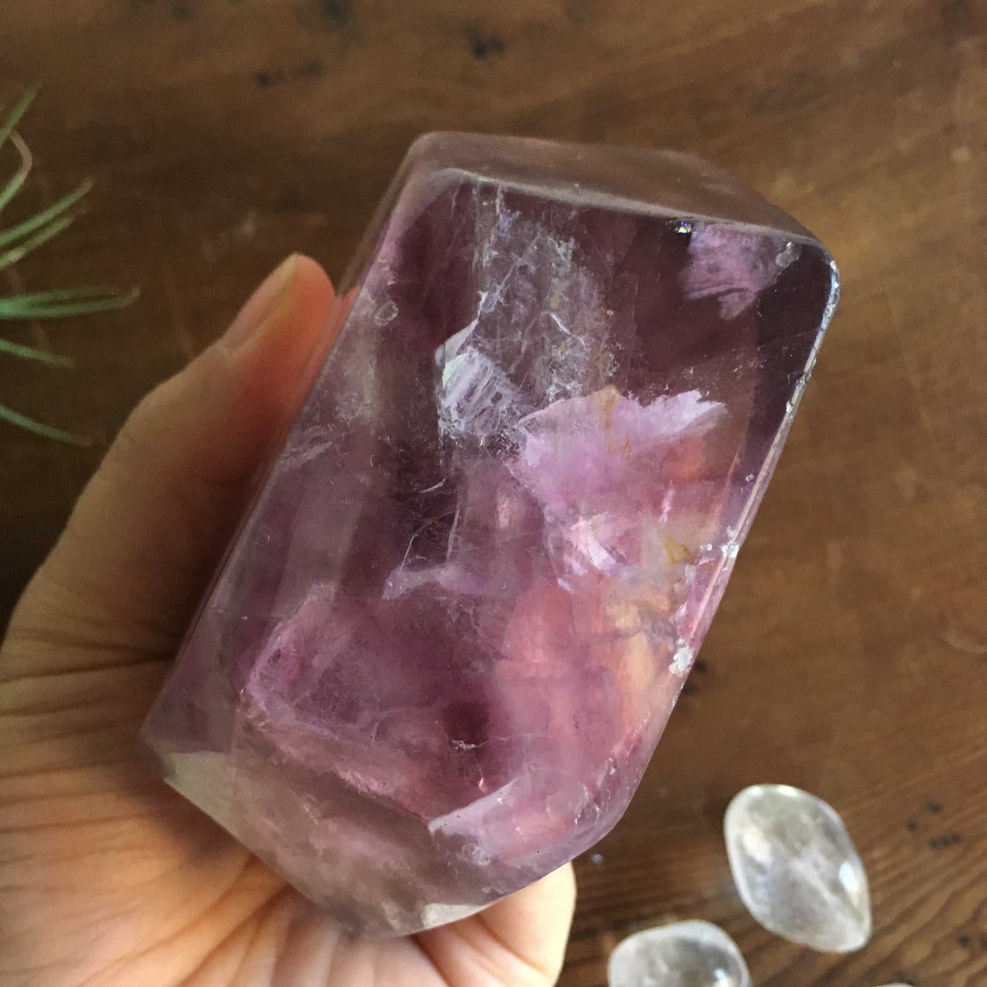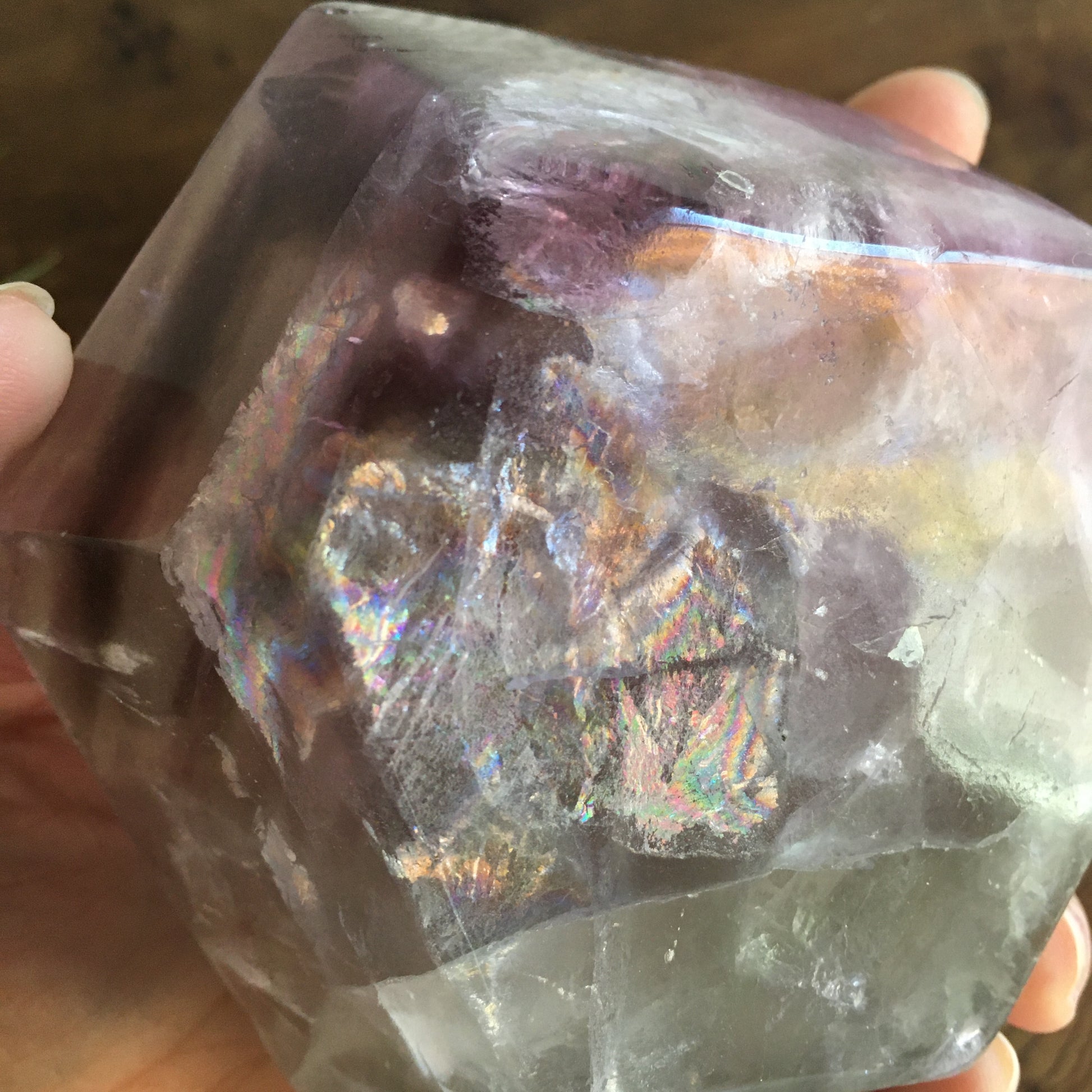 Rainbow Fluorite reflects revitalizing energy coming out of the Earth's core, through the plants, and into our bodies, lighting up each chakra. Rainbow Fluorite is a conduit for pure life force energy. It revitalizes our cells, realigns our energy flow, strengthens the synapses in our brain, and opens our heart to worthiness and abundance. When focusing on the heart, Rainbow Fluorite aids the journey through emotional shadow, thus eliminating feelings of unworthiness, fear, shame, addiction, or guilt. When we know our worth and own our worthiness, we then unlock limitless abundance, prosperity, and opportunities for advancement.